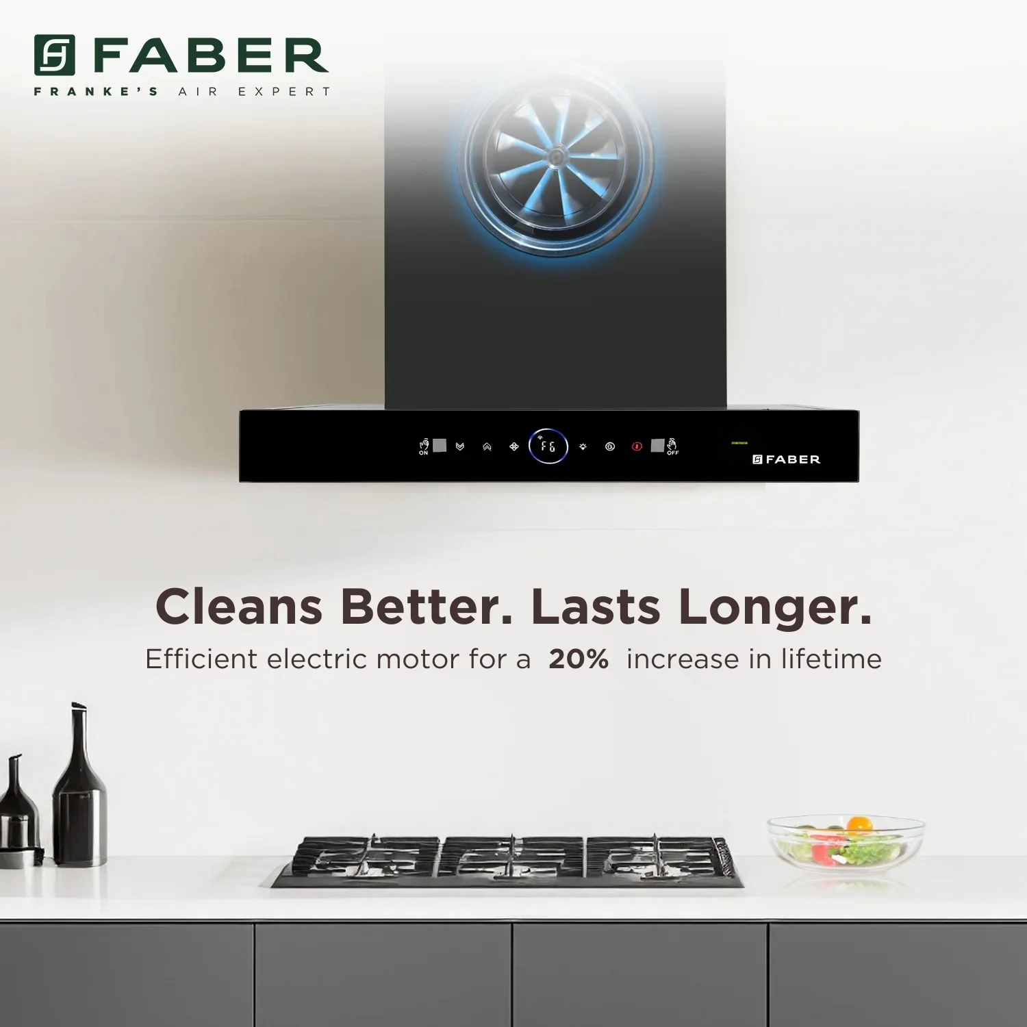 - Efficient Kitchen Performance — high power specifications engineered into a beautiful Faber Hood Dazzle.