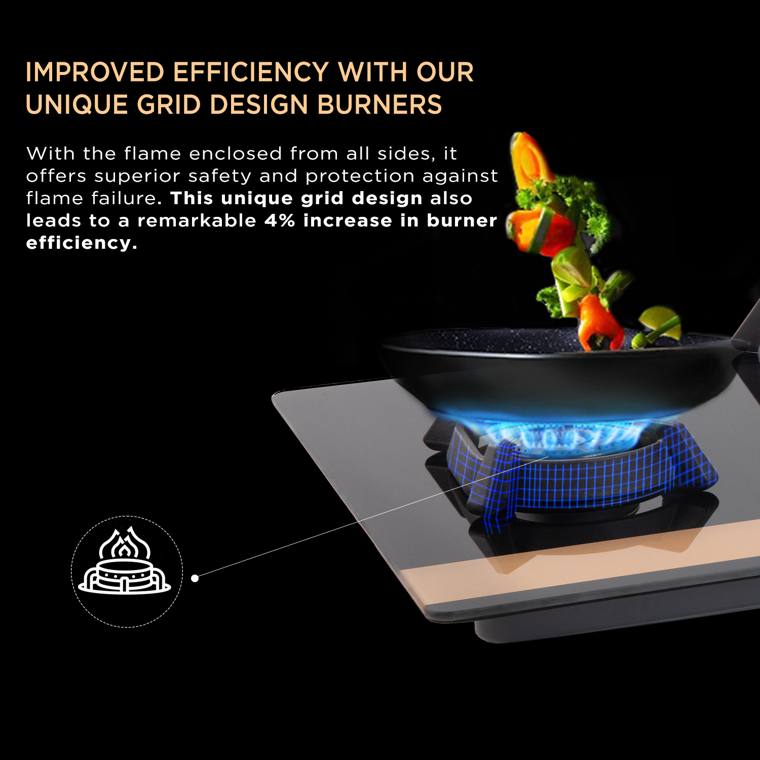 - Efficient Kitchen Performance — high power specifications engineered into a beautiful Faber Hood Hob.