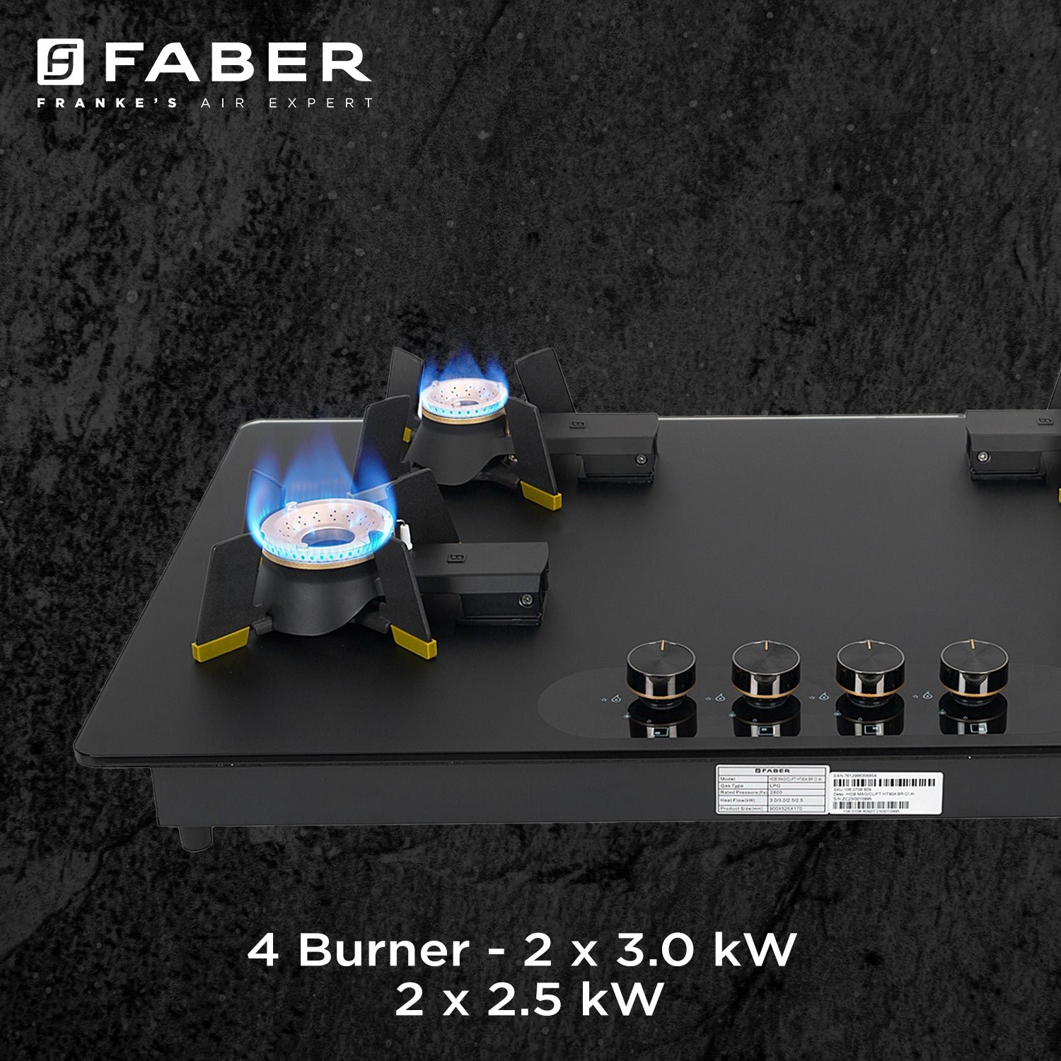 - Efficient Kitchen Performance — high power specifications engineered into a beautiful Faber Hood Hob.