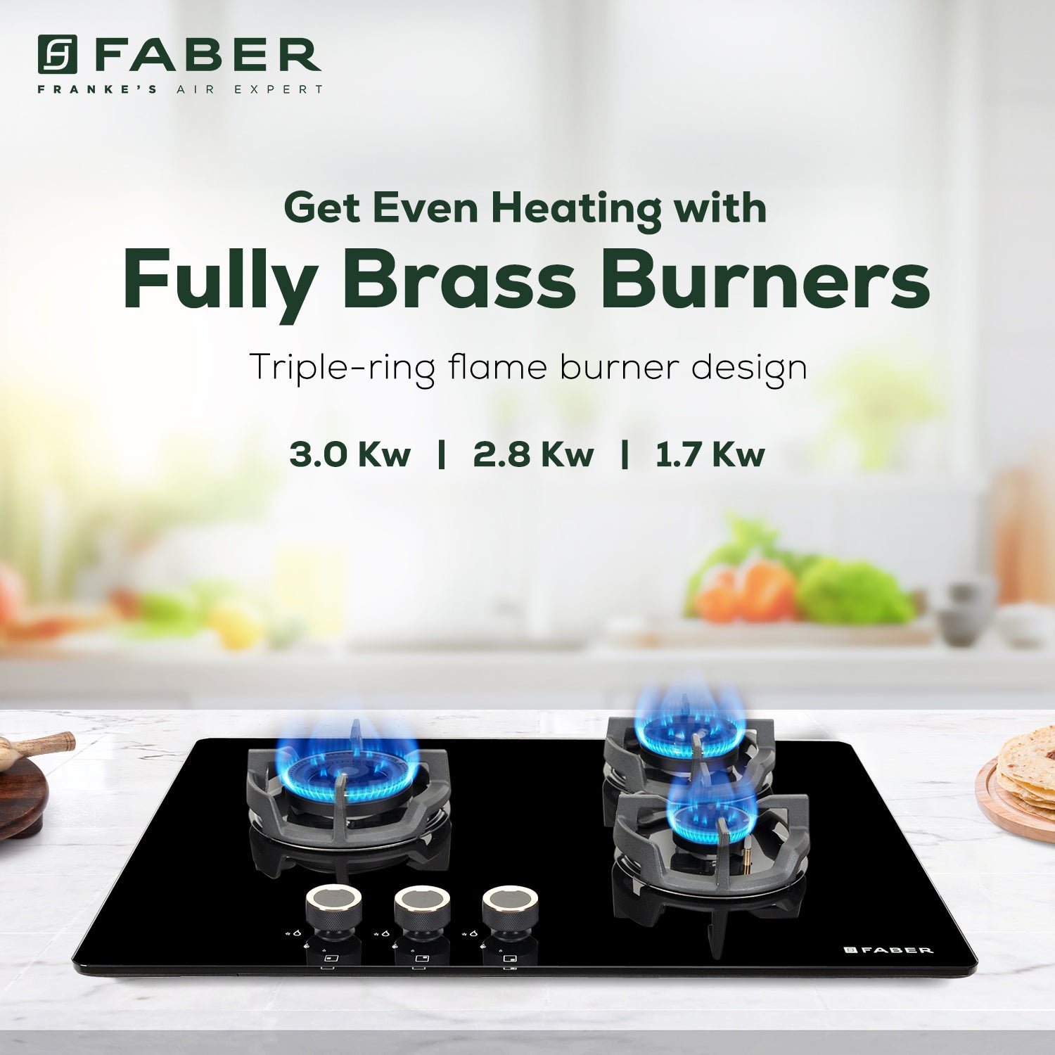 - Efficient Kitchen Performance — high power specifications engineered into a beautiful Faber Hood Hob.