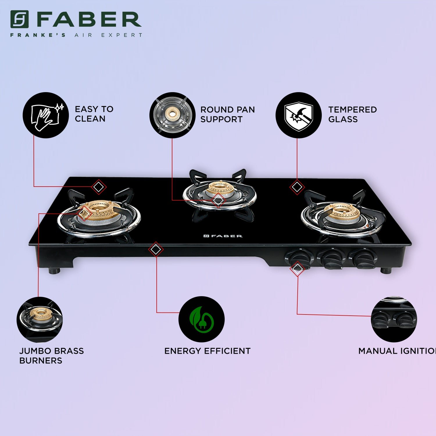 - Efficient Kitchen Performance — high power specifications engineered into a beautiful Faber Hood hob.