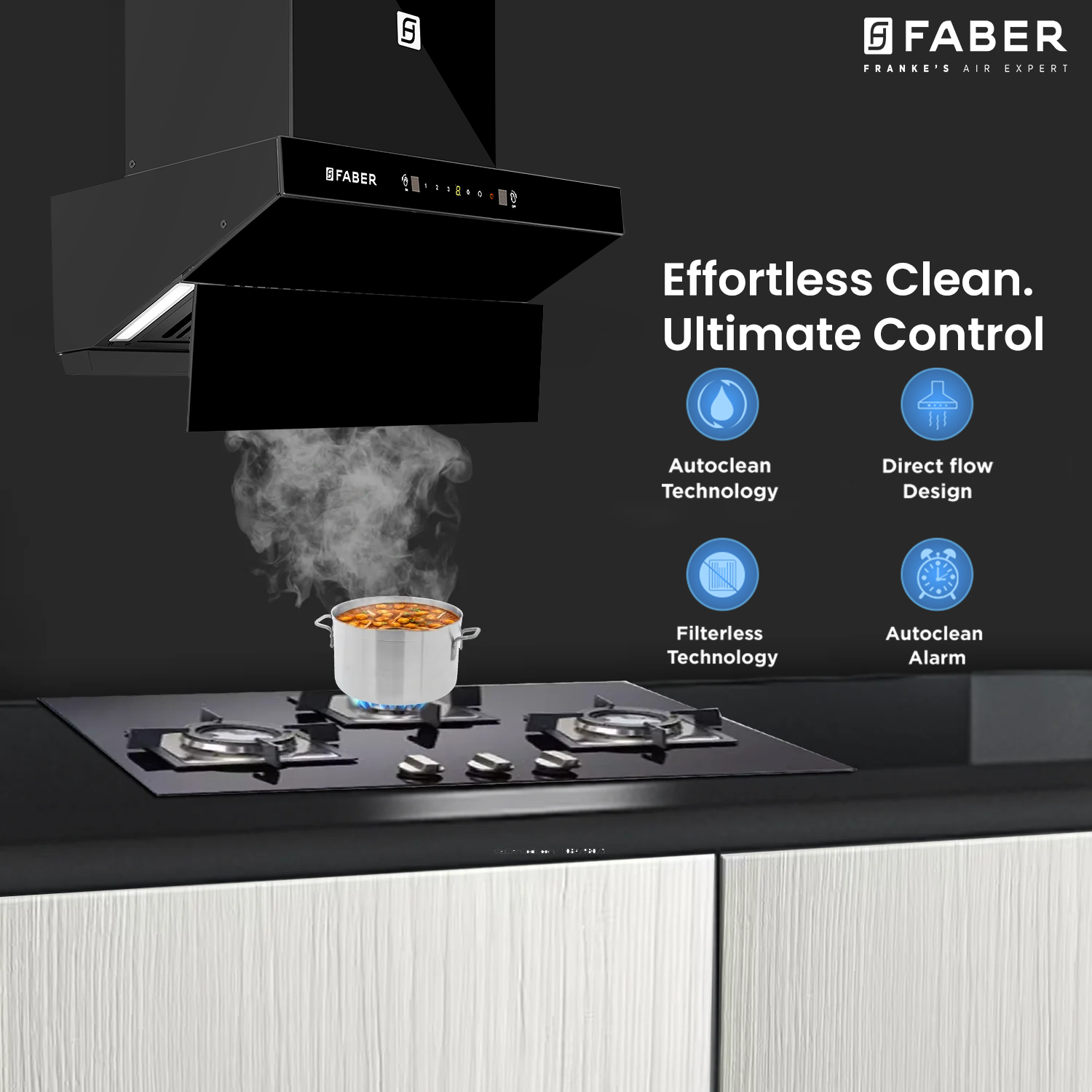- Advanced 60cm Coverage — wide extraction area captures smoke and grease perfectly.